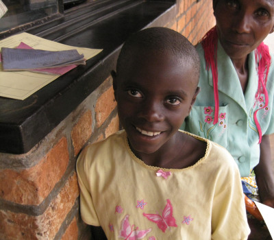 Jumel, a 9 year old in Gashanda, Rwanda, waits with her mother to see the doctor. She was treated for a fungal infection and received zinc, multi-vitamins, and was vaccinated.